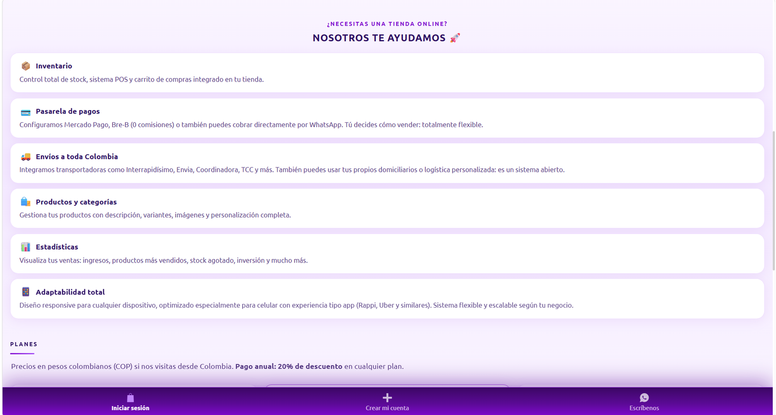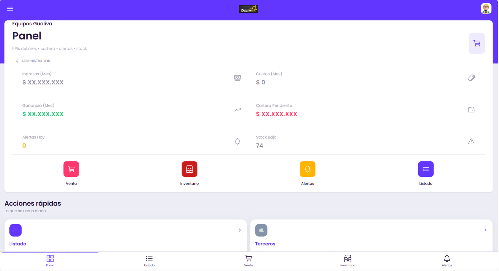 inventario, alertas, cartera, etc.