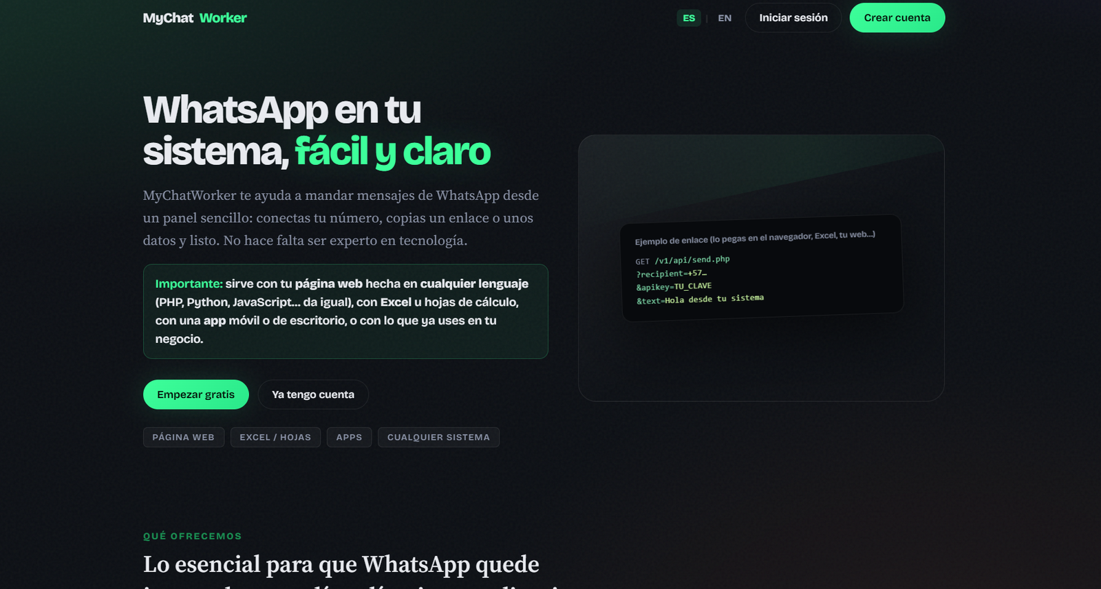 Integraciones: cola de notificaciones (WhatsApp vía API externa),